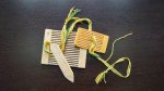 Процесс мастер –класса заключается в попеременном перемещении ниток верхнего слоя вниз, а нижнего вверх. Особенность состоит в том, что для зевообразования используется специально изготавливаемое приспособление – бердо (или бердечко). Оно представляет собой тонкую пластину размером около 13–14 см в высоту и 24–26 см в ширину, поделенную на перегородки щелеобразными прорезями. Посреди каждой перегородки имеется круглое отверстие. Бердо может быть выполнено из дерева, пластика либо очень плотного картона.