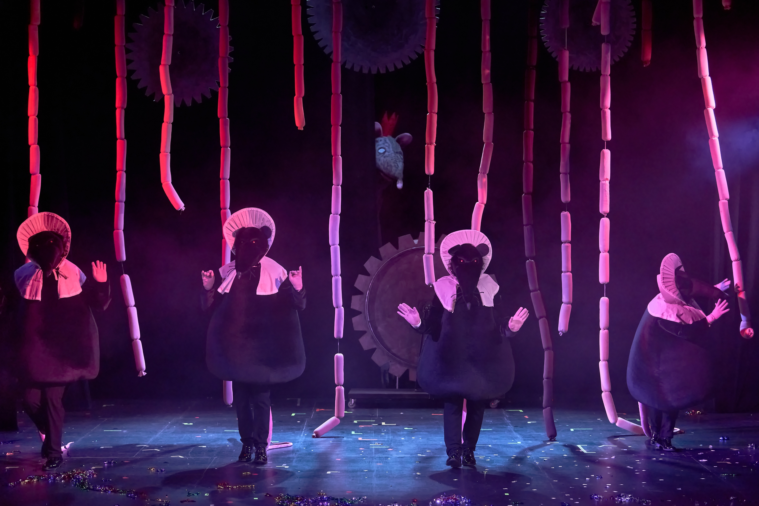 Всё смешалось: механизмы, куклы, люди, мыши, сон и явь... Загадка часов, которые оживают прямо на сцене, не оставит равнодушным ни одного зрителя! В Архангельском театре кукол эти часы – не просто декорация, а целый живой мир! Механизм древних часов огромен и величественен, словно хранит в себе историю и тайны веков… Но здесь, в их недрах, кроме кукол и солдатиков с барабанами, живут настоящие люди. И ещё – мыши, которые ворвались в этот удивительный мир не случайно, а потому что именно так задумано сказкой, вдохновлённой мистическим миром Эрнста Теодора Амадея Гофмана. Наш «Щелкунчик» – это история, где перемешалось яркое и неожиданное, большое и крошечное, смешное и немного грустное, волшебное и самое простое. Всё это – чтобы коснуться каждого сердца, каждого зрителя. Пробудить в нём веру в чудо и сказку, которые живут рядом с нами в повседневной жизни.