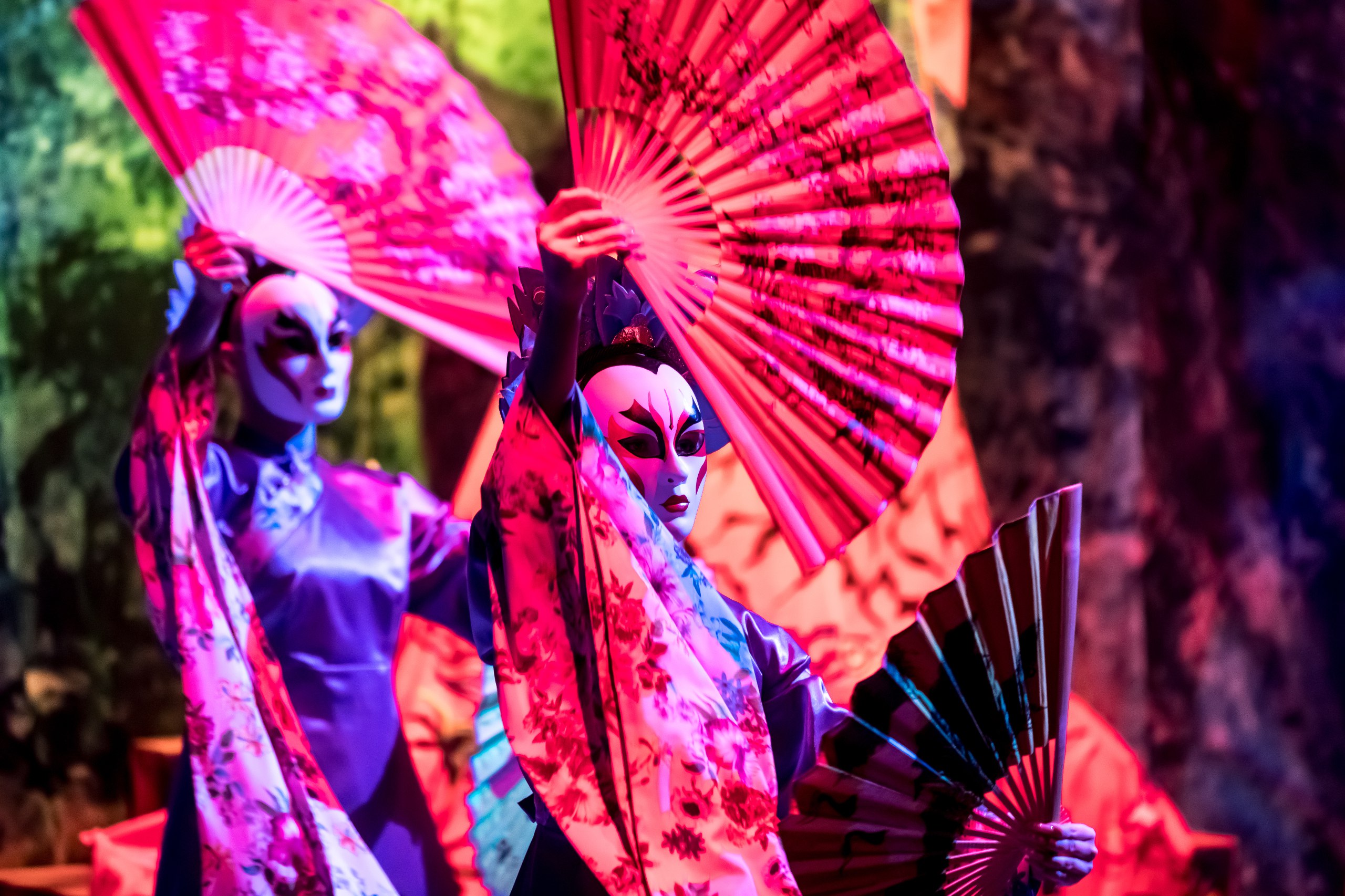 Балет - отдельный восторг, постоянно в движении, смена костюмов(шикарных), полноценное участие в действе, вовлекающем и зрителей в сюжет...