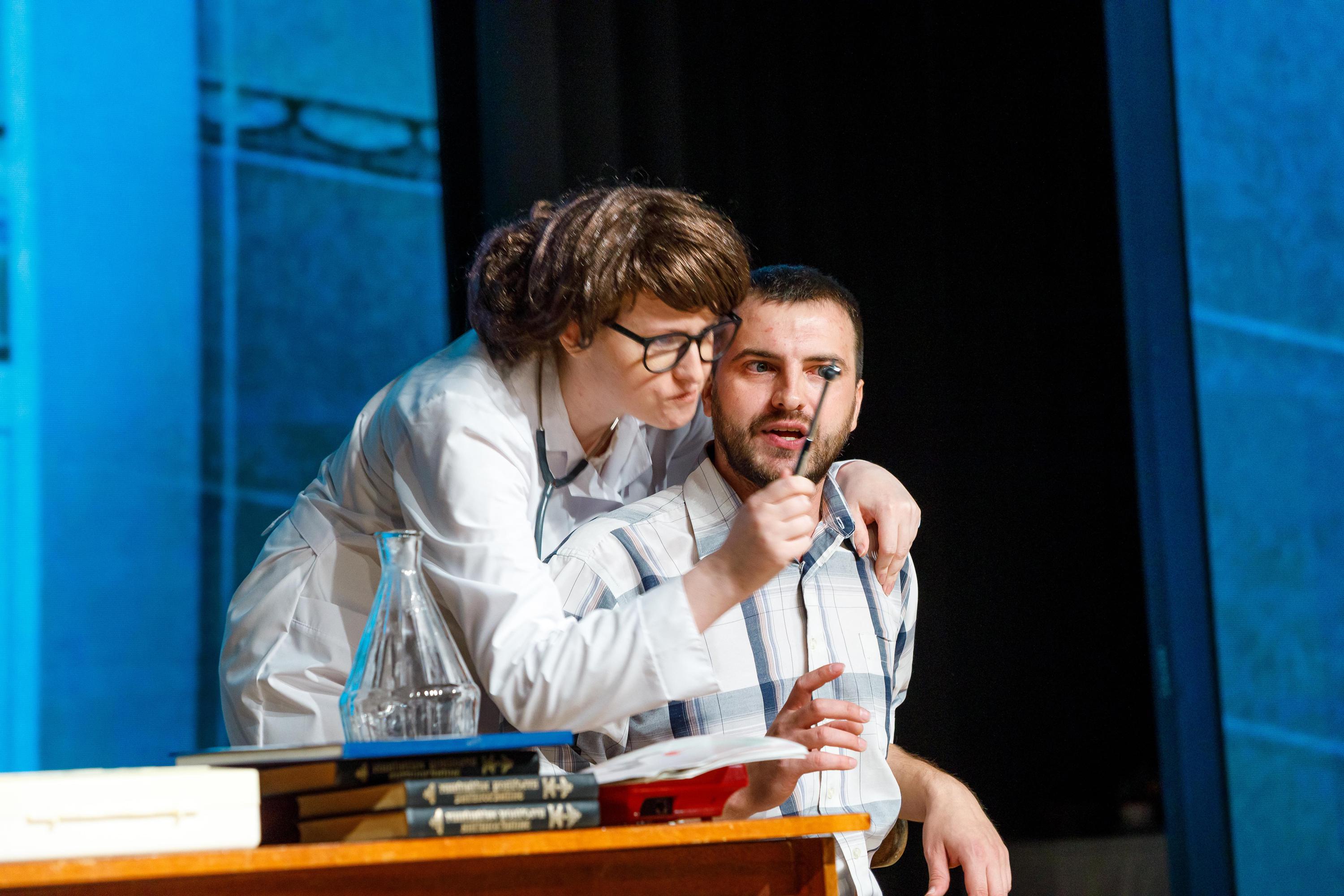 Спектакль «Мужчина и женщины», поставленный по комедии Леонида Зорина «Бурные дни Гарунского», раскрывает историю о том, как обычный человек попадает в водоворот нелепых ситуаций, пытаясь получить простую справку.