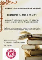 Отзывы к мероприятию «творческая встреча с поэтическим клубом "Астрея"»