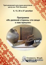 Приглашаем на программу «Из далекой старины эти вещи к нам пришли», Третьяковский культурно-досуговый центр