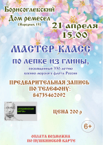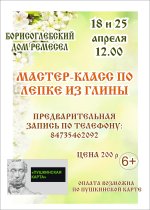 Приглашаем на мастер-класс по лепке из глины, Борисоглебский дом ремесел