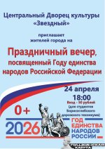 Приглашаем на праздничный вечер, посвященный году единства народов Российской Федерации, Центральный дворец культуры «Звездный»