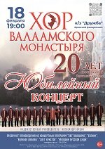 18 февраля 2026 года в 19:00, к/з "Дружба" Брянской областной филармонии. Юбилейный концерт Хора Валаамского монастыря. 2025 год юбилейный — хор отмечает двадцатилетие творческой деятельности. За эти годы спето более 1000 концертов в России и за рубежом, коллектив знают и любят во многих регионах России от Балтийска до Владивостока, от Мурманска до Севастополя за глубокие содержательные программы, за неповторимость звучания, за яркость голосов, за особую духовность в исполнении, даже, светских произведений.