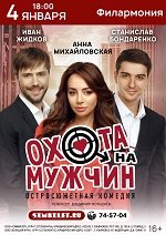 4 января 2026 года в 18:00, к/з "Дружба2 Брянской областной филармонии. Остросюжетная комедия «Охота на мужчин». Главная героиня - экстравагантная красотка, о которой мечтает любой мужчина, только не