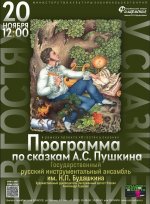 20 ноября в 12:00 в рамках проекта «В гостях у сказки» в органном зале филармонии Государственный инструментальный ансамбль имени Николая Будашкина представит юным гостям филармонии концертную программу по сказкам поэта Золотого века Александра Пушкина.