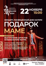 Концерт, посвященный Дню матери — это один из самых любимых и родных праздников. В этот вечер забайкальские мамы услышат со сцены самые теплые слова, добрые и знакомые песни, а также яркие и запоминающиеся хореографические номера в исполнении артистов музыкального театра.