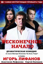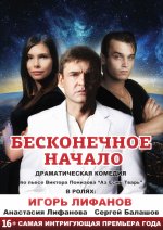 Комедийная, фонтанирующая юмором, иронией и сарказмом, постановка по провокационной пьесе Виктора Понизова – стала, пожалуй, самой интригующей премьерой театрального сезона. Автор затрагивает самые важные, извечные, глубинные вопросы человеческой души, но при этом спектакль - не поучительная история, не навязывание каких-либо стереотипов, отнюдь, это с юмором и сарказмом показанная изнанка нашего мира, нашего общества и нашей Души. Неимоверная чреда интригующих событий, потрясающая актерская игра и неожиданный финал не оставит зрителя равнодушным к происходящему. Спектакль смотрится легко, на одном дыхании, современно. И после спектакля уходишь окрылённый, уверенный в том, что теперь всё будет по-другому! И ты найдёшь в себе силы задуматься над каждым своим поступком, прежде чем совершить его. И мир вокруг тебя наконец-то изменится к лучшему! И нужно обязательно сейчас же позвонить маме!!!! Ведь действительно - уже очень давно ей не звонил… Главную роль в спектакле играет популярный артист Игорь Лифанов. В кино он больше известен как герой-любовник, брутальный, крепкий, не сомневающийся в себе суровый мужик. Роль в спектакле «Бесконечное начало» позволяет раскрыться всем граням актёрского мастерства этого актера. Здесь он бескомпромиссный, надежный и мужественный, И в то же время смешной и ранимый, переживающий и страдающий, сквозь слёзы открывающий свою Душу наизнанку. Также в спектакле заняты потрясающие актёры: Сергей Балашов и Анастасия Лифанова («Мажор», «5 минут Тишины», «Дикий», «Алиби», «Морские дьяволы», «Декорации убийства», «Защита Красина», «Свои») Итак, начнём… Бесконечное начало… Продолжительность: 1 час 40 минут (с антрактом)