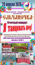 Отчетный концерт образцового танцевального коллектива «Триумф» Городского Дворца культуры под руководством Елизаветы Сергеевны Иончиковой. Зрителей ждет яркое сочетание классической хореографии и современных танцевальных направлений - от балета до модерна. Коллектив «Триумф» - обладатель Гран-При межрегиональных, всероссийских и международных конкурсов. В программе также примут участие: студия эстрадного вокала «Поющий город» Городского Дворца культуры (руководители Е. Ю. Селеменева и Ю.И. Волохова), студия оригинального жанра «Пламя» Дома культуры железнодорожников (руководитель Е.Н.Федулова).