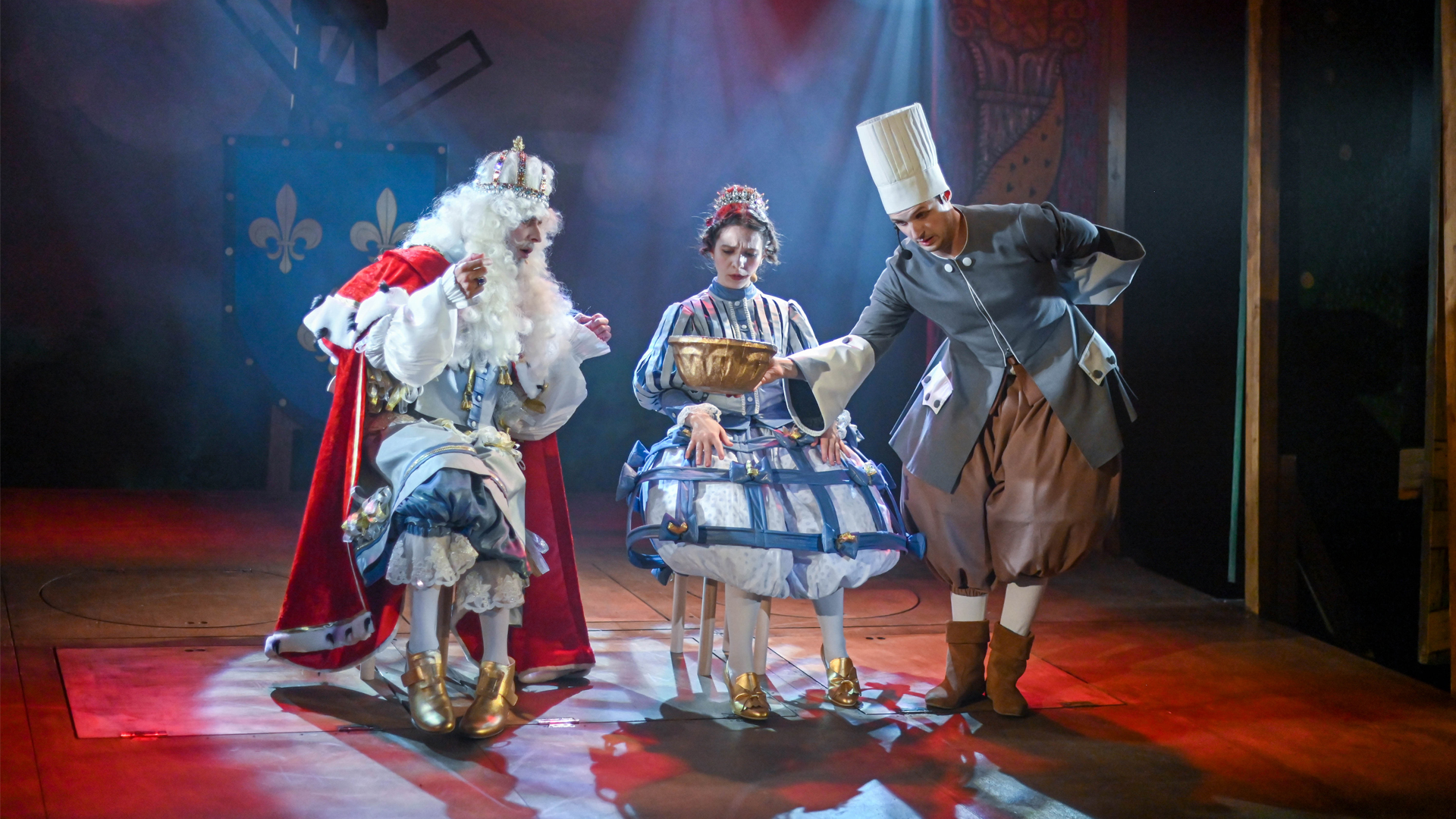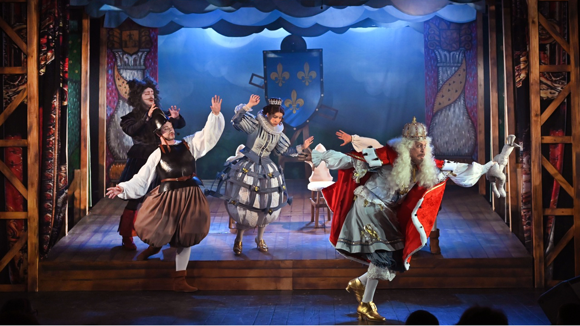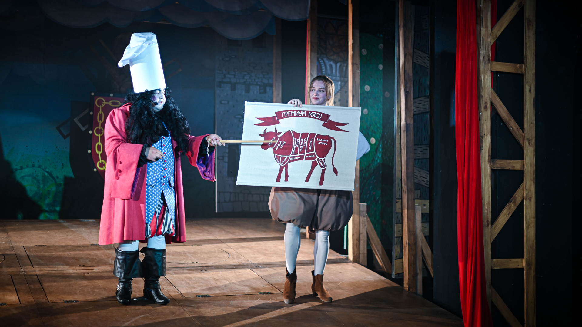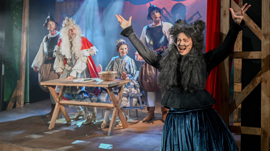 Браво режиссёру! Декорации хоть и простые, но очень функциональные и, за счёт талантливой, кропотливо отработанной игры актёров, мы действительно быстро перемещались между лугами и полями, замком короля и людоеда. А превращение людоеда в большую кошку, а затем и в мышь - поистине завораживающая картина. Такого режиссерского решения я не ожидала. Браво🎉
