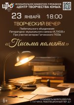 Музыкально-поэтический вечер по воспоминаниям и лирике поэтов Серебряного века: Н.Гумилёва и А.Ахматовой, М.Цветаевой и Б.Пастернака, А.Вертинского и В.Холодной, а также О.Мандельштама.