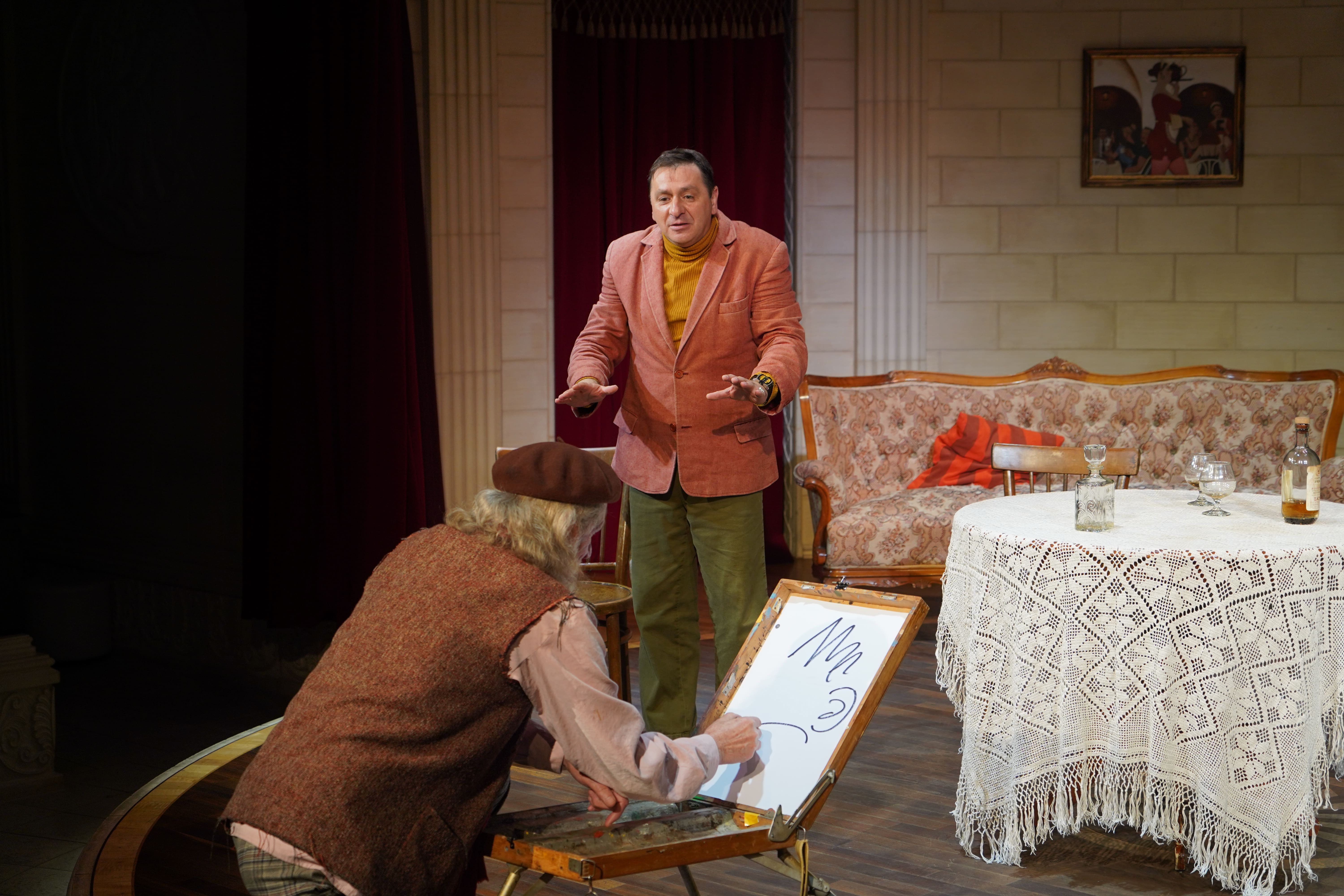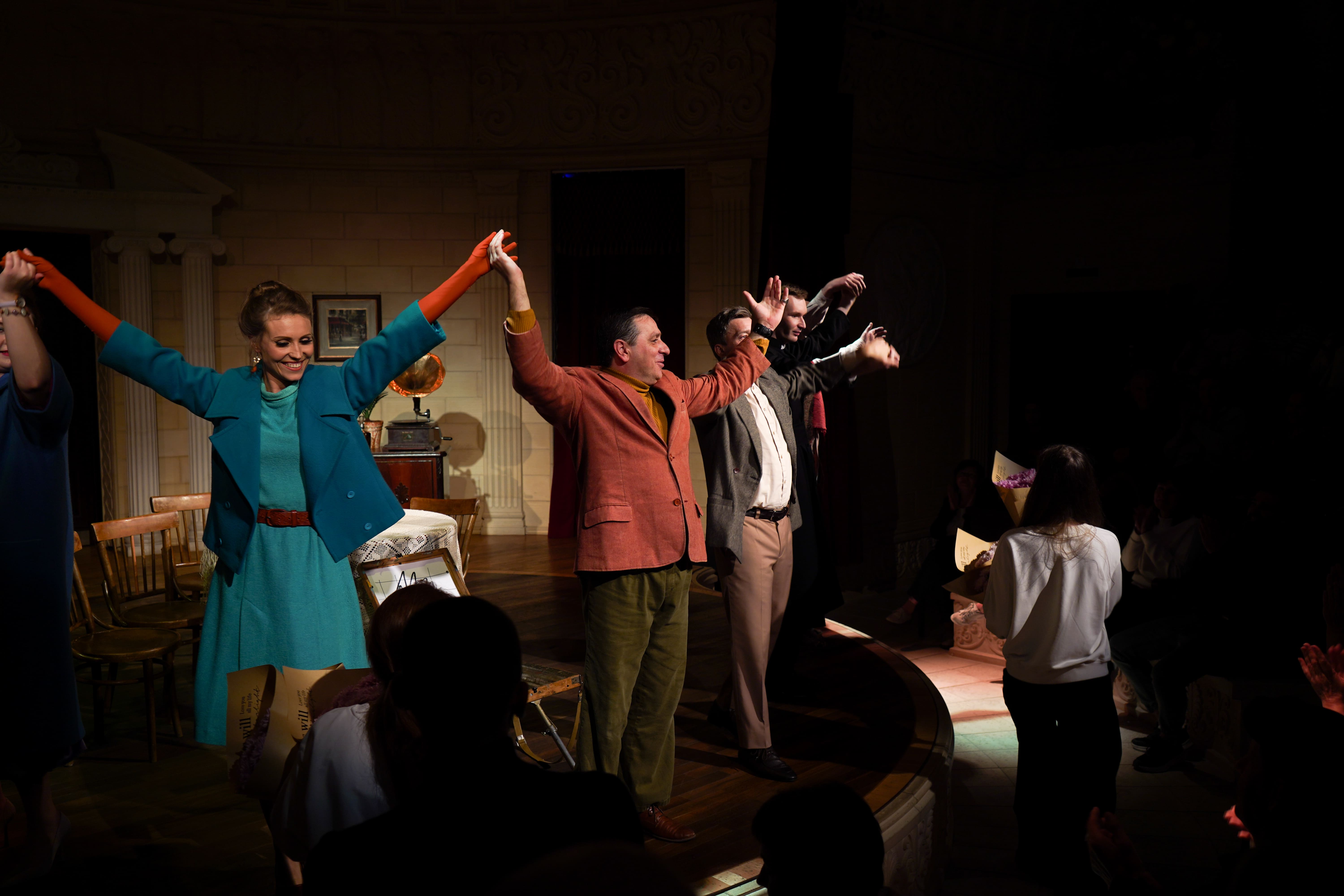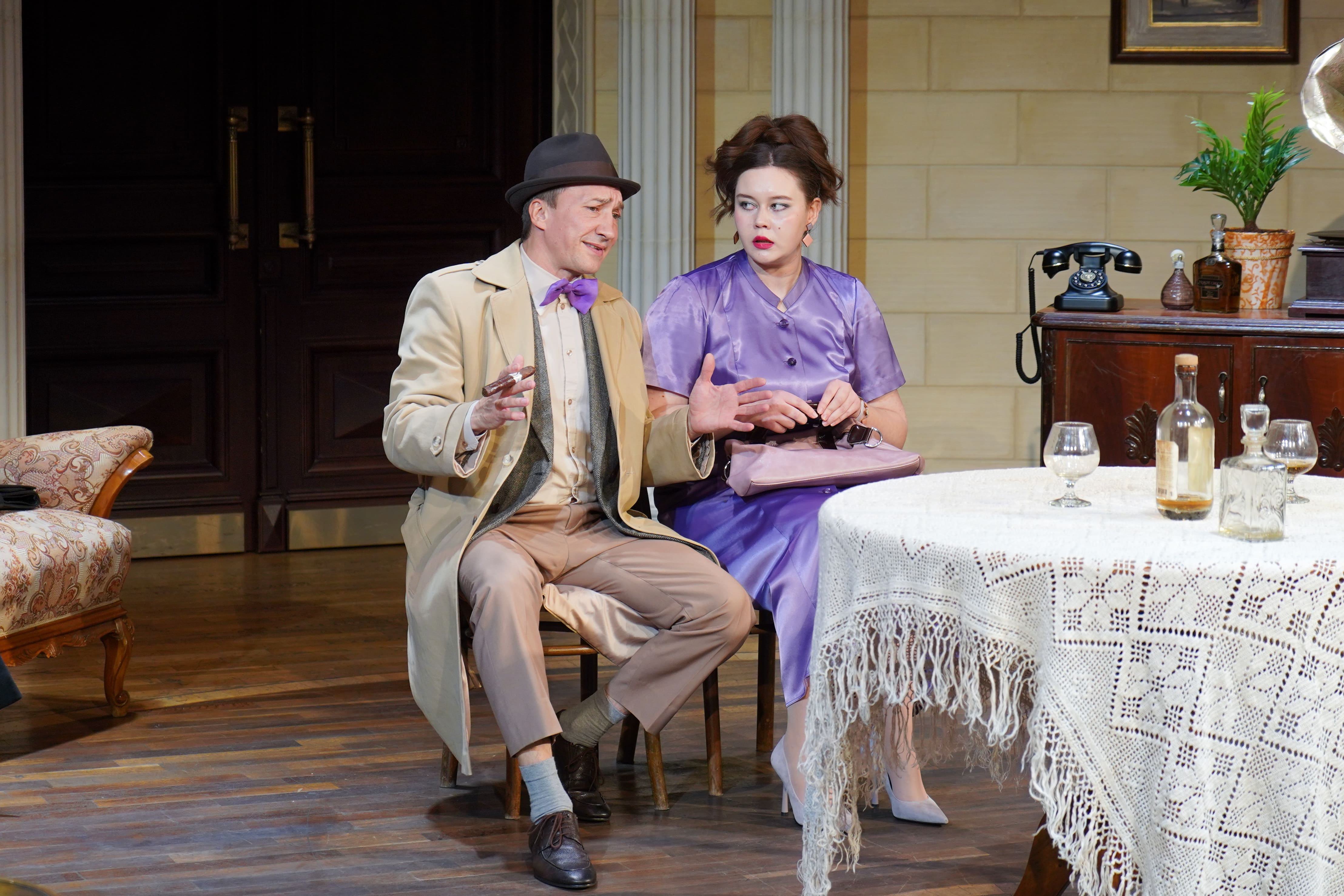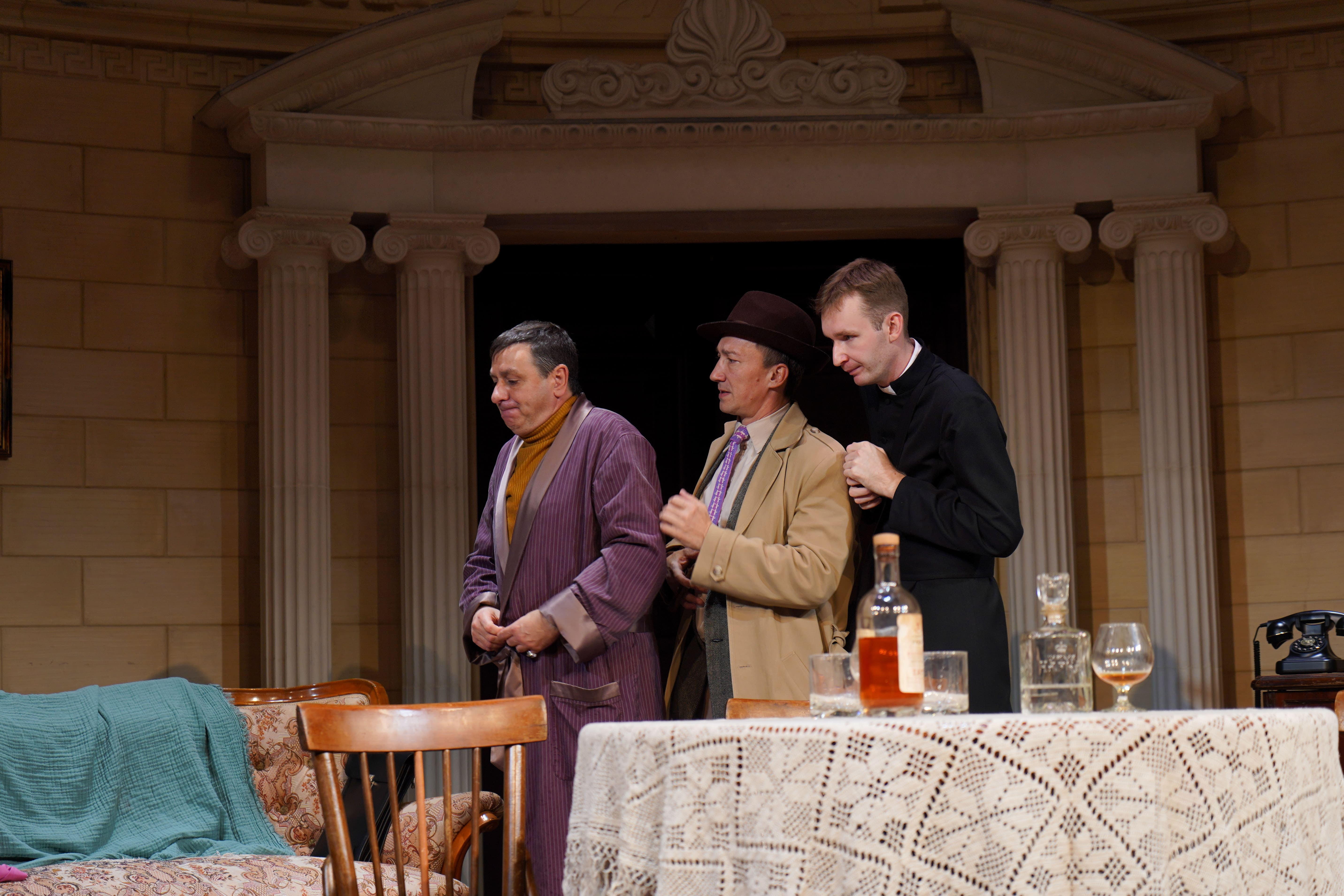 Герои будут жарко спорить друг с другом, воровать улики, стрелять из оружия и наперегонки опустошать бокалы, чтобы немного успокоить нервы. Режиссер спектакля Эдуард Юрков следует за автором пьесы и желает лишь одного — подарить зрителю два часа отдыха и веселья.