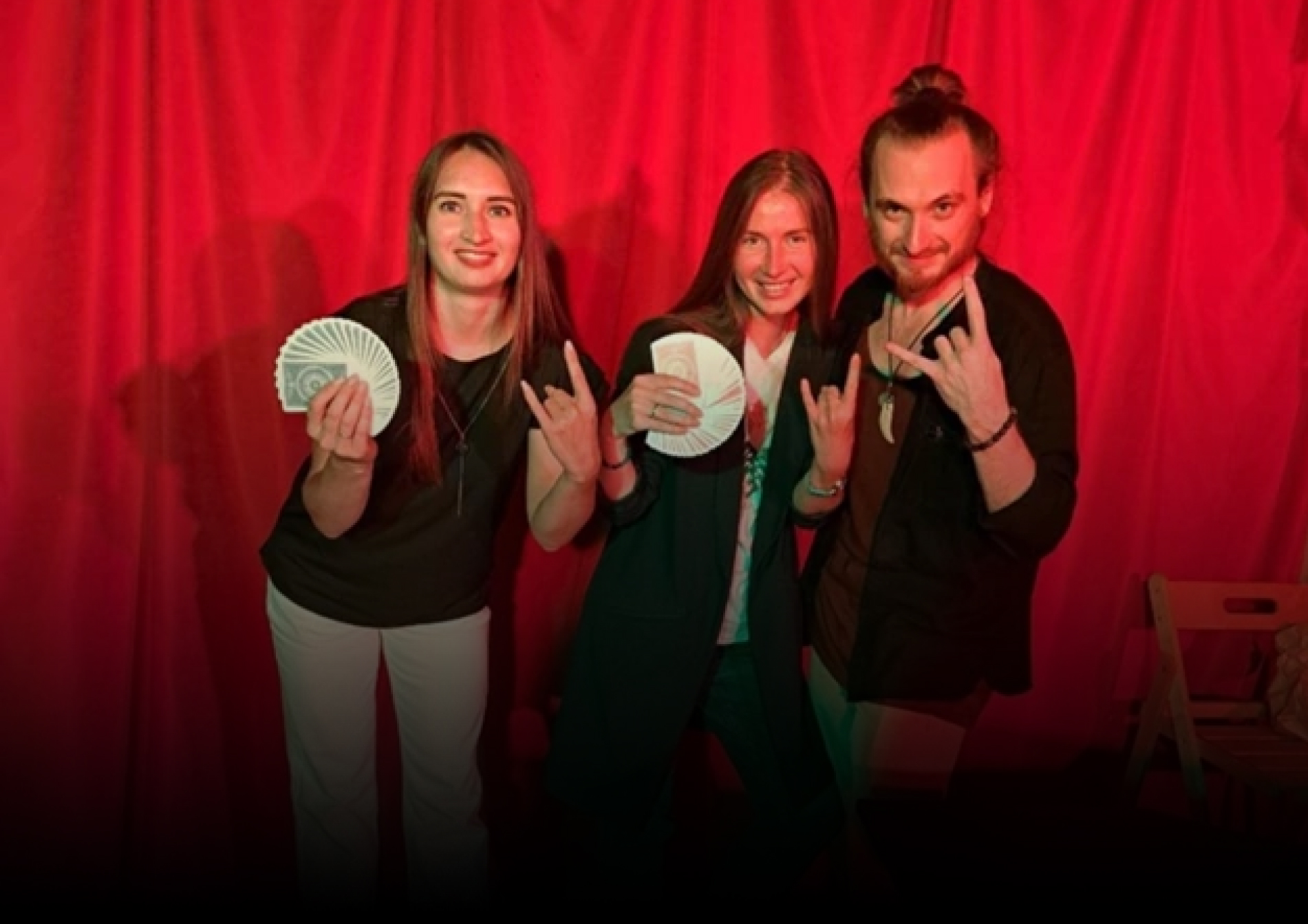 В моём «Вечере магии» ты сможешь «пощупать» различные формы иллюзионного искусства (карты, побег из наручников, чтение мыслей, русская рулетка), проверить их на себе (в шоу участвуют все желающие зрители) и решить — актуален ли ещё этот оригинальный жанр в наш век «нейросетей» или всё таки...