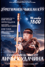 26 октября на сцене Национального театра РА - первый сольный концерт Анчы Кудачина. Этот концерт посвящён всем тем, кто искренне любит свою Родину, ведь именно это святое чувство делает человека непобедимым богатырём, чьи дела и поступки направлены на истинное благо и процветание нашей великой страны. В концерте принимают участие засл.артист РА Юрий Чендыев, Мерген Тельденев, Юрий Темеев, Айас и Екатерина Турлуновы, Арчын Адабасов. Хореография - Милана Бахтушкина.