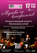 17 февраля на сцене Усть-Канского дома культуры Государственный оркестр и мастера искусств Республики Алтай исполнят саундтреки из популярных кинолент "Берегись автомобиля", "Иван Васильевич меняет профессию", "Петербургские тайны", "Бриллиантовая рука", "Гардемарины вперед", "Игра престолов", "Дети капитана Гранта", "Бандитский Петербург", "Любовь и голуби" и многие популярные мелодии.