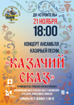 История сибирского края немыслима без истории вольных переселенцев, землепроходцев-казаков. Участники ансамбля казачьей песни "Казачий сказ" в песнях расскажут о нелегкой судьбе, о мужестве и крепости духа, о любви и единстве казаков.