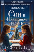 Вас ожидает незабываемое путешествие по заснеженным просторам фантазии, где каждый шаг – сказка, а каждое движение – волшебство. Образцовый хореографический ансамбль «Юность» представляет праздничный концерт «Сон в новогоднюю ночь» – поэтичную хореографическую фантазию на музыку вальса Г. В. Свиридова. Зрителей ждут изысканные танцевальные композиции, пронизанные духом зимнего чуда. На сцене оживет атмосфера настоящей новогодней сказки, а виртуозное исполнение юных дарований в сочетании с трогательным музыкальным сопровождением не оставит никого равнодушным.