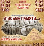 Необыкновенно сильный по эмоциональному воздействию на зрителя, содержательный и пронизанный героико-патриотической тематикой спектакль состоится в центре культурного развития в исполнении участников народного хореографического ансамбля «Жемчужина» под руководством Муратовой Светланы Алексеевны. Основанная на подлинных письмах солдат Великой Отечественной войны и воспоминаниях свидетелей той страшной поры, творческая работа представит трагическую историю, типичную для большинства советских семей, переживших самую кровопролитную войну. Замечательный актерский ансамбль, талантливые хореографические сцены, хорошо продуманная и качественно осуществлённая постановочная работа позволили спектаклю стать поистине знаковым событием очередной годовщины Великой Победы.