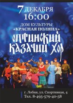7 декабря в 16:00 в Доме культуры «Красная Поляна» состоится незабываемый концерт Оптинского Казачьего Хора с программой «Казаки‑казаченьки»!