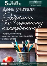 Дорогие зрители, приглашаем вас на эстрадный концерт «Экзамен по хорошему настроению», который пройдёт в День учителя. Забудьте о строгих оценках — мы проведём урок с улыбкой и в мажорном настроении!