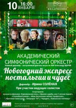 Чтобы любимый праздник Новый год стал сказочным, ярким и запоминающимся, нужно хорошее настроение, которое поможет вам создать академический симфонический оркестр и артисты филармонии. Для этого нужно присоединиться к пассажирам «Новогоднего экспресса ностальгии и чудес» под любимые мелодии и ритмы советского кинематографа.
