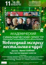 Чтобы любимый праздник Новый год стал сказочным, ярким и запоминающимся, нужно хорошее настроение, которое поможет вам создать академический симфонический оркестр и артисты филармонии. Для этого нужно присоединиться к пассажирам «Новогоднего экспресса ностальгии и чудес» под любимые мелодии и ритмы советского кинематографа.