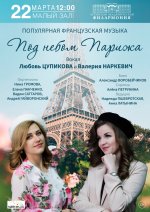 Камерный концерт оставит незабываемые впечатления у всех, кто хочет насладиться этой волшебной атмосферой! Солистки Любовь Цупикова и Валерия Наркевич порадуют зрителей своими потрясающими голосами, и перенесут в романтический Париж, подарив уникальные моменты, наполненные эмоциями и искренностью.