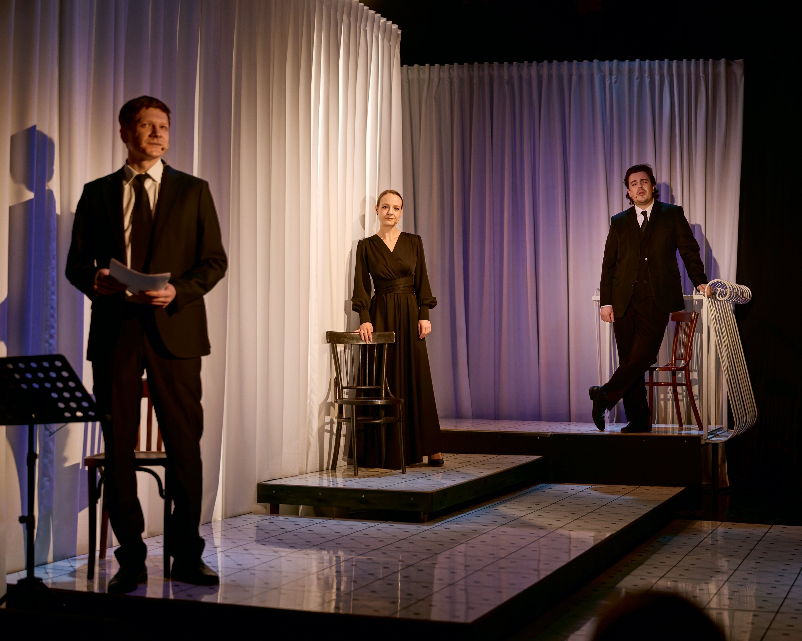 Продолжительность - 55 минут, спектакль идёт на малой сцене без антракта.