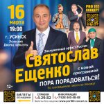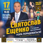 Святослав Ещенко – популярный комик, способный рассмешить зал с первой секунды, родился в День Смеха. Его лёгкий юмор создаёт позитивные эмоции и обладает оздоровляющим эффектом. Святослав Ещенко, являясь мастером перевоплощения, завоевал народную любовь в образах: Тамады, покусанного пчёлами, панка по кличке «Ирокез», продвинутой старушки Вовановны. В программе «Пора порадоваться!» вместе с новыми рассказами от полюбившихся персонажей Святослав представит зрителям стендап без мата: смешные истории о семейных отношениях, любви, финансах, наших гостиницах, поликлиниках, пешеходах и водителях, городе и деревне, и в целом о нашей жизни. В качестве бонуса – убойные анекдоты! Многое будет исполнено впервые!!!