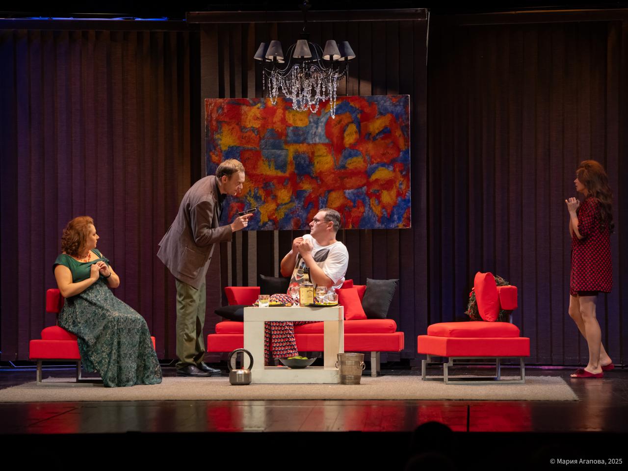 В спектакле заняты: заслуженный артист РФ Владимир Равданович; актеры - Николай Акулов, Анна Будовская, Алексей Воронин, Глеб Глебов, Юлия Денежкина, Ольга Заяц, Мария Лобова, Александр Покатнёв.