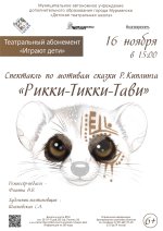 16 ноября зрителям будет показана героическая сказка по знаменитому произведению Редьярда Киплинга о приключениях отважного мангуста Рикки-Тикки-Тави, представленная юными актёрами через гармоничное сочетание музыки, пластики и слова.