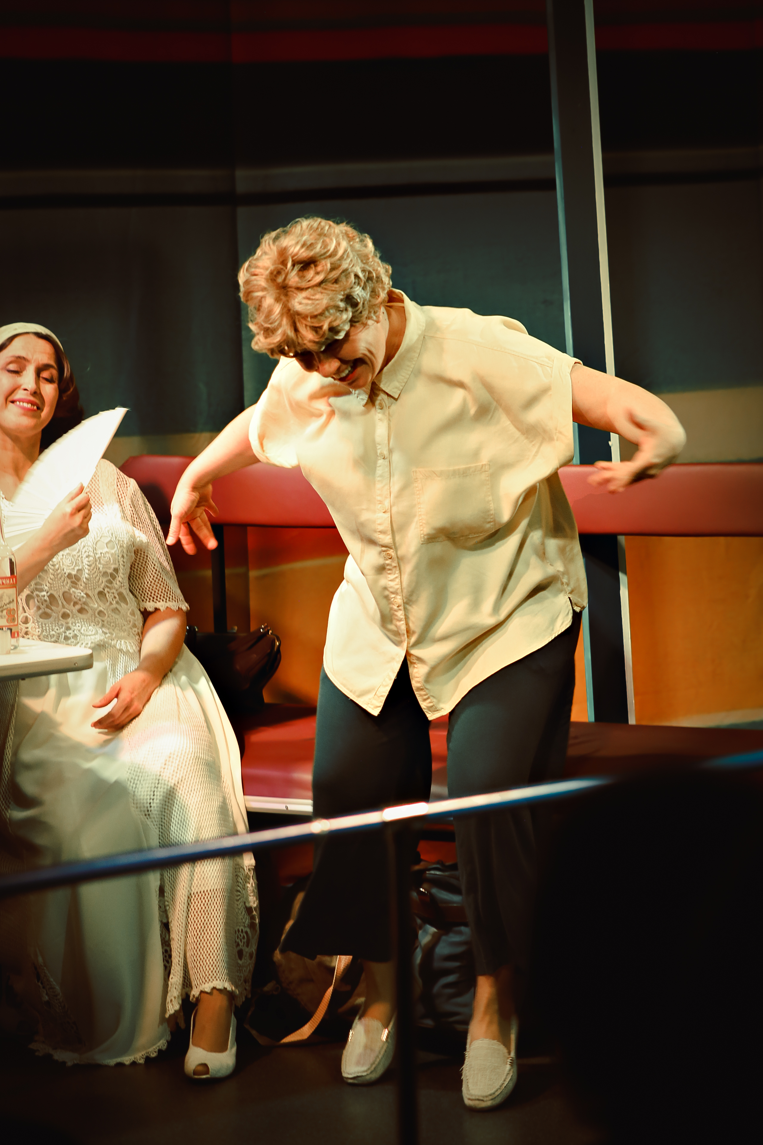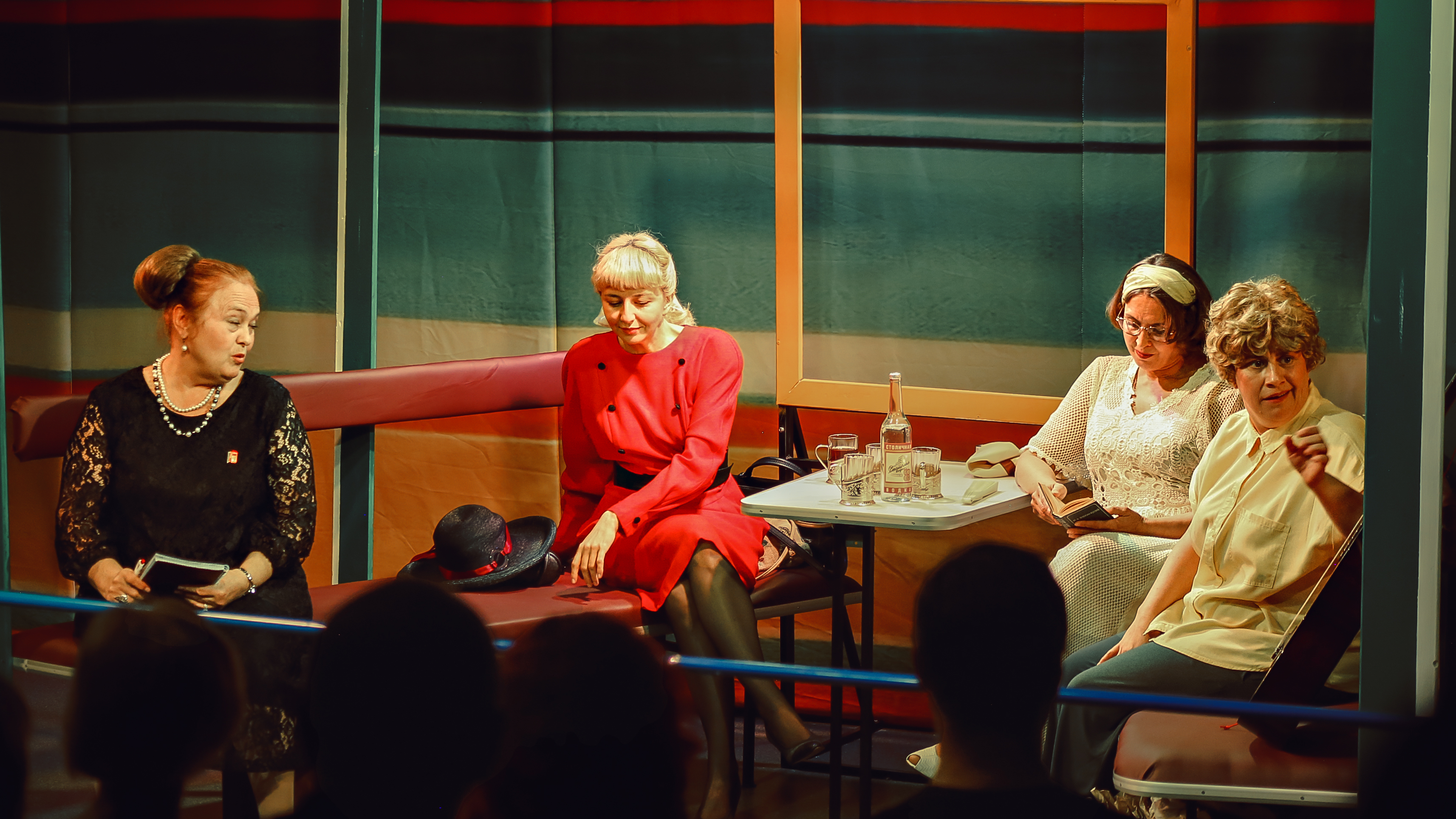 Спектакль замечательный! В основном, смеялись, но в двух местах слёзы навернулись на глаза, конечно же, это связано с переживаниями героини Раушании Тагировой, когда она говорит о войне, эта тема не может не тронуть сердце, душу. Несколько раз прозвучали рассуждения о душе, а из памяти всплывают строчки из произведения Нодара Думбадзе "Закон вечности", где главный герой произносит такие слова " Душа человека во сто крат тяжелее тела..." И сегодня эта тема очень ярко выражена в образе Нины Владимировны, которая всю жизнь несет в душе груз невосполнимой утраты... Елена Голобокова в образе Веры это просто яркий, искрометный фейерверк! Евгения, блестяще исполненная Татьяной Заболотской, совершенно противоположный образ - беспомощная, вечно попадающая в комические ситуации... Виктории, в исполнении Елены Соктиной, хочется верить, что она действительно не меркантильная, корыстная барышня, а любящая, заботливая жена. И строгая, но не лишённая сострадания, да ещё и танцующая проводница - Аделина Баталова! И объединил всех актрис-героинь наш замечательный режиссёр - Сергей Заболотский. Спектакль тронул за душу... Спасибо большое!