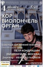Концерт «Хор. Виолончель. Орган». Приготовьтесь к уникальному музыкальному вечеру, в котором классика XIX века встречается с современными мировыми премьерами, оживая в волшебном звучании Камерного хора «Нижний Новгород», органа Ольги Бестужевой и виолончели Петра Кондрашина.