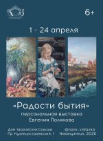 1 апреля в Доме творческих союзов открывается персональная выставка Евгения Ивановича Полякова «Радости бытия». Художник из г. Гурьевска представит более 50 живописных произведений, созданных за последние несколько лет активной творческой деятельности.