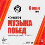 6 мая состоится концерт с участием творческих коллективов и солистов государственного джаз-клуба «Геликон» с программой «Музыка Побед». В программе прозвучат марши, вальсы, песни военных лет, духовая музыка.