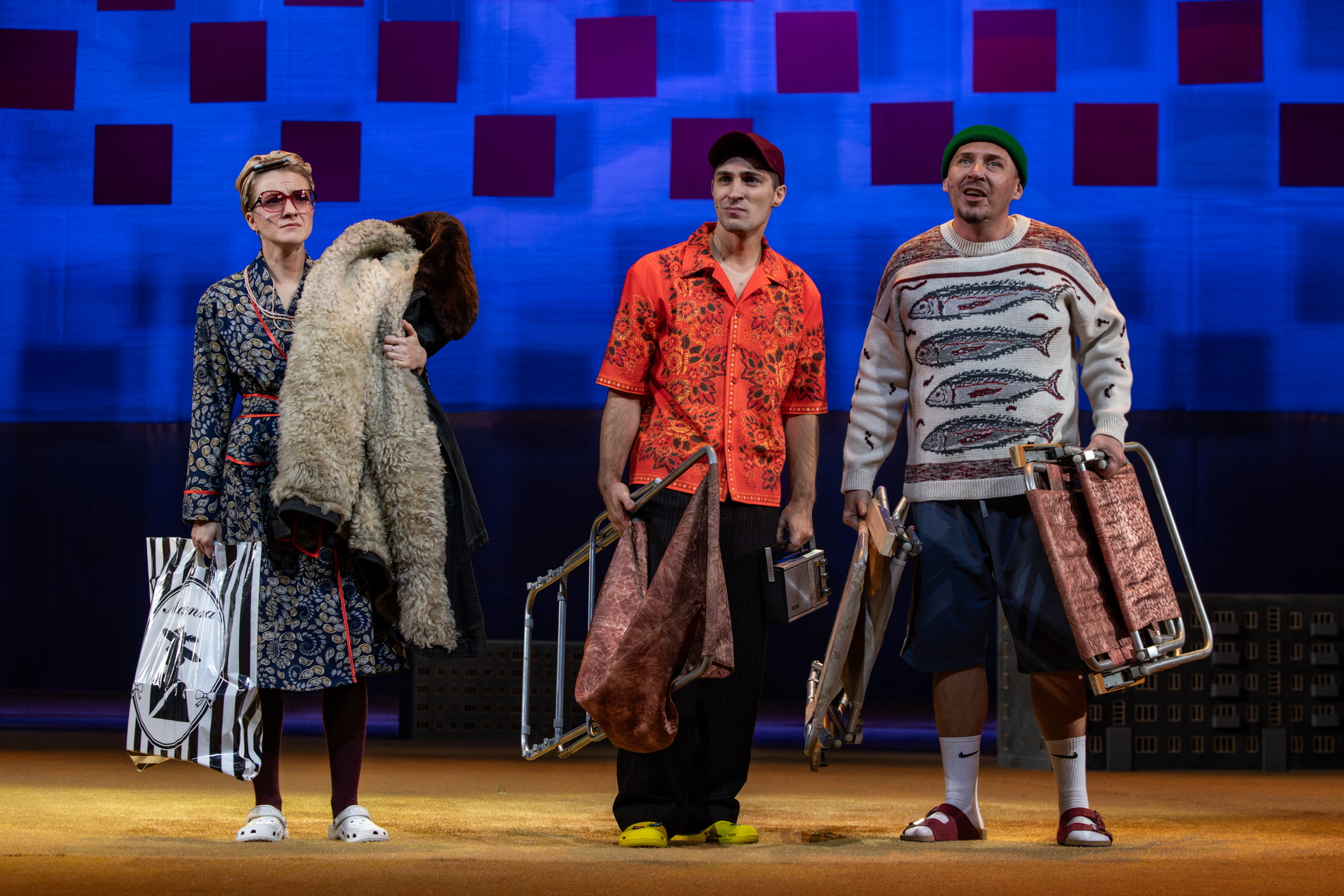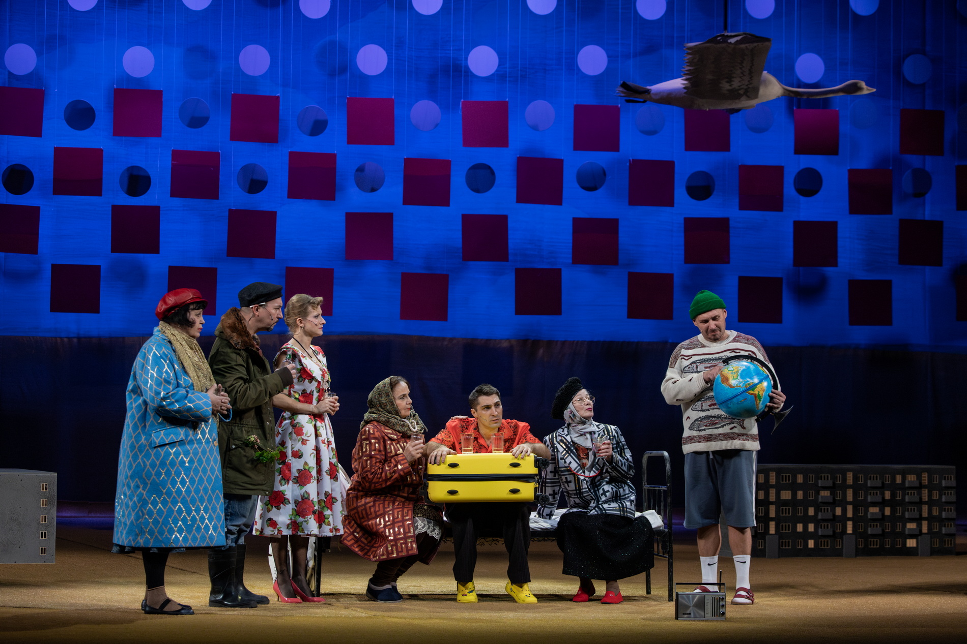 Музыка удачно вписалась в действо и костюмы старушек при минимализме декораций