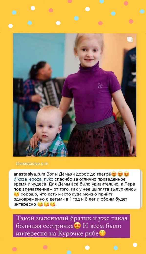Если мы вас снимаем на программе, фото можно найти в нашем Telegram-канале, подпишитесь на него заблаговременно: @kozaegoza_nk или по поиску в телеграм "Коза - егоза. Детские события Новокузнецк".