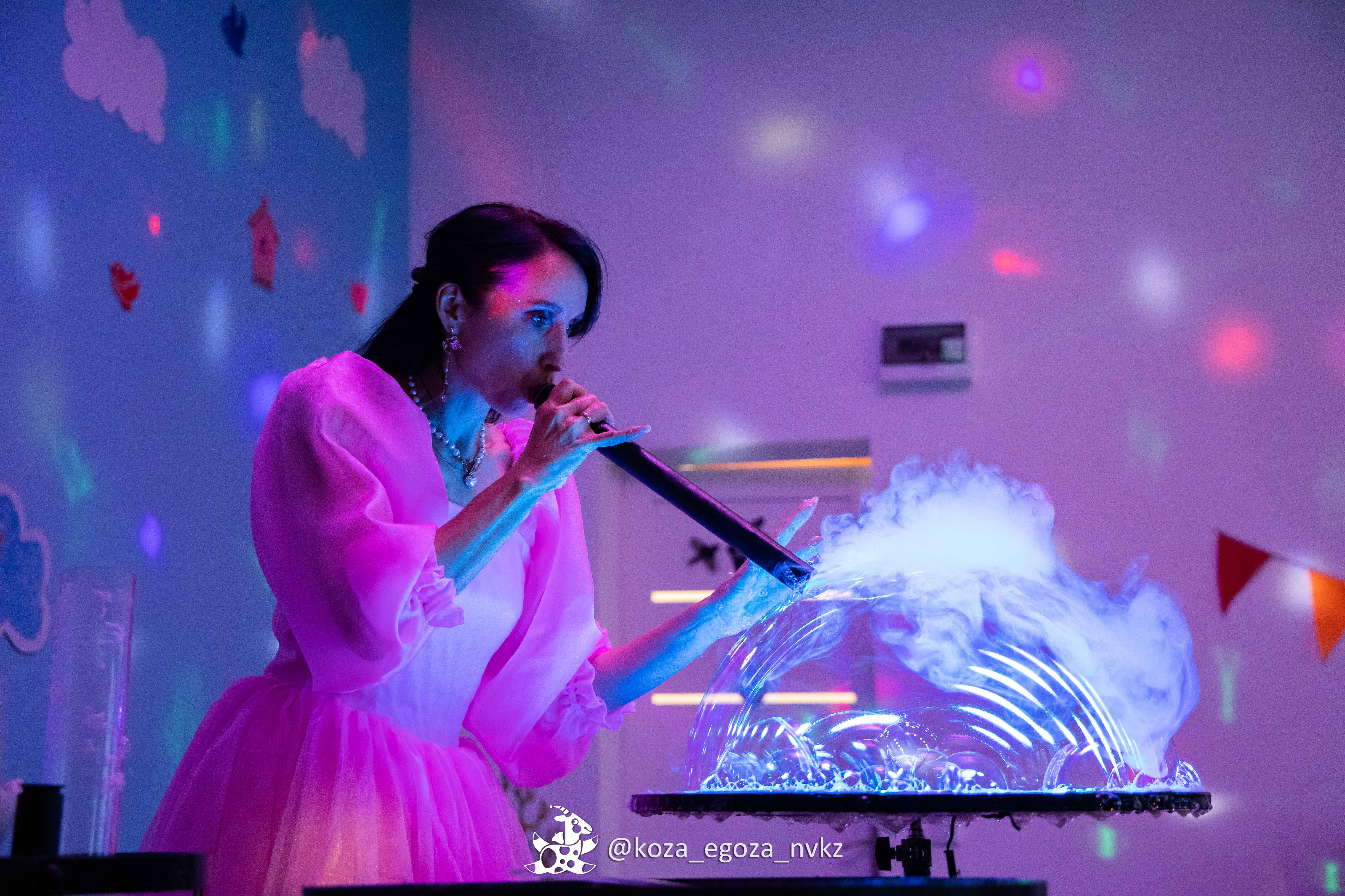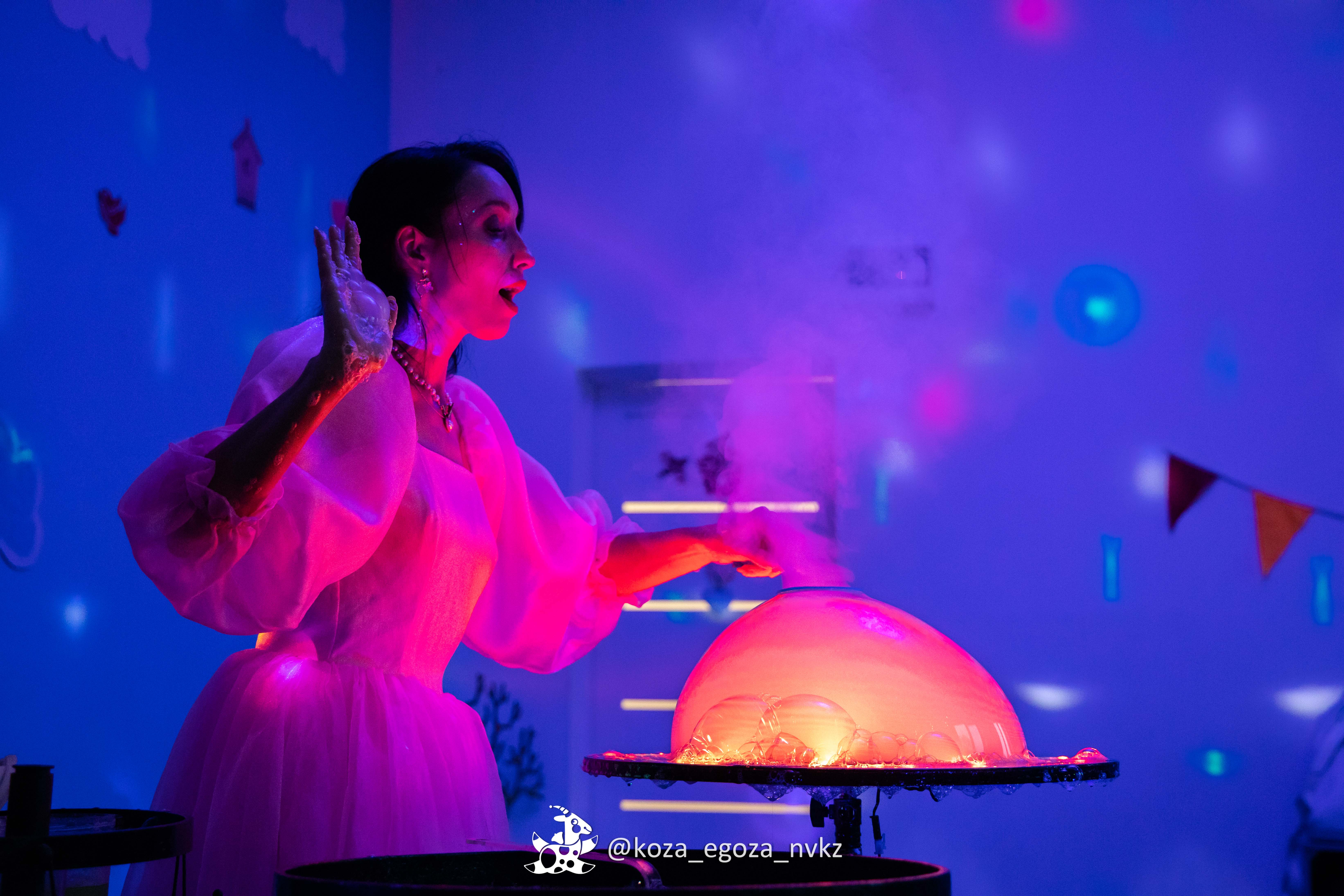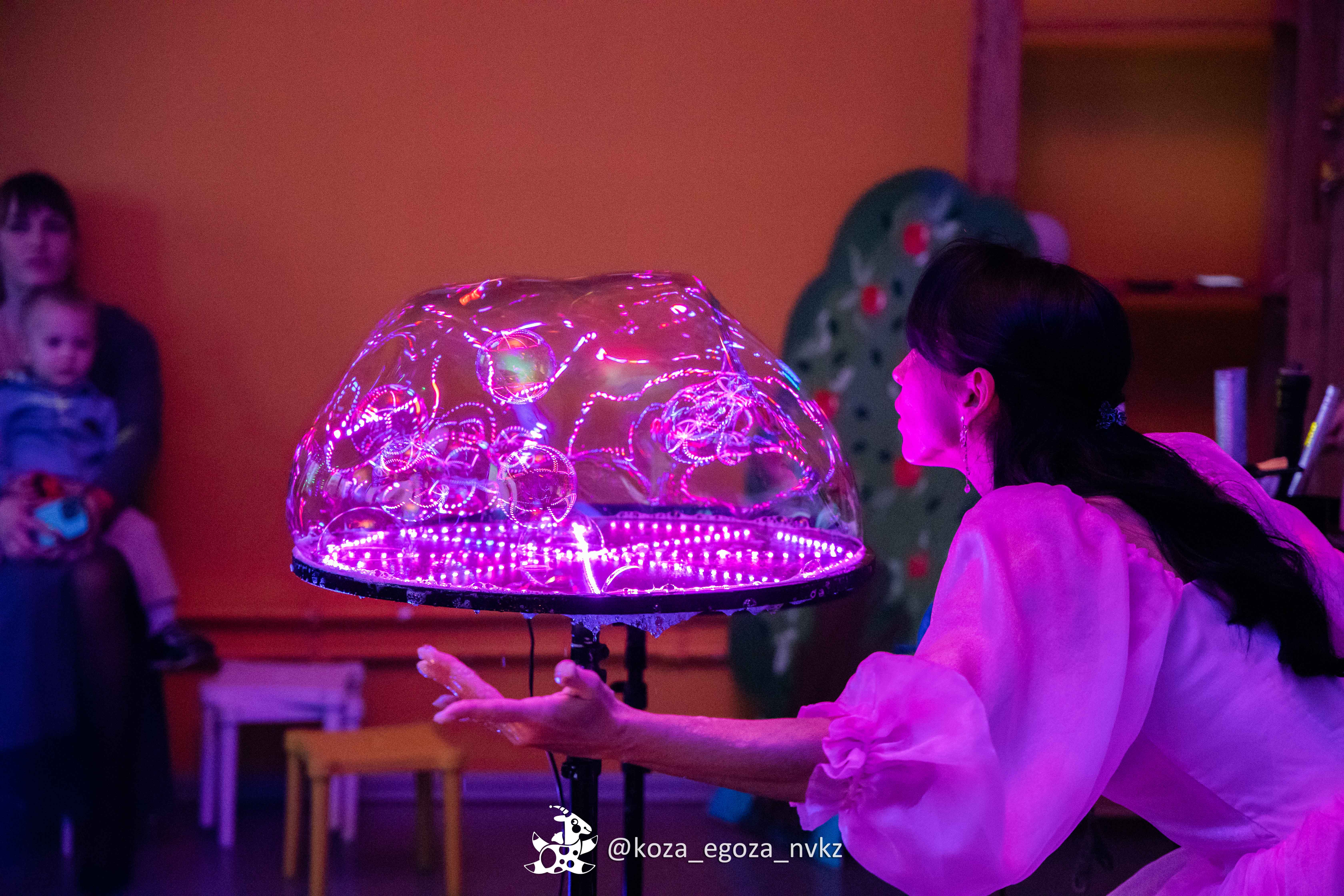 Огромные переливающиеся мыльные пузыри танцуют на световом столе, меняя цвета и взмывают под потолок - завораживающее зрелище! 🪩