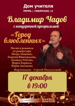 Друзья, пришло время согревать сердца музыкой! Дом Учителя вновь открывает свои двери и приглашает вас 17 декабря в 19.00 на концерт Владимира Чадова «Город влюбленных».
