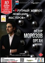 10 декабря состоится закрытие второго фестиваля органной музыки «Король орган». Лауреат международных и всероссийских конкурсов Фёдор Морозов представит программу «Крупный жемчуг немецких мастеров».