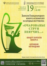 19 апреля в 14.00 в Большом зале консерватории состоится Концерт-Закрытие и церемония награждения участников X Международного конкурса исполнителей на народных инструментах: «Очарованье струн певучих...».