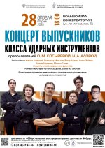 28 апреля 2026 года в 18:00 в Большом зале консерватории (ул. Ленинградская, 16) состоится концерт выпускников класса ударных инструментов преподавателей О. М. Косыревой и Н. А. Аловой.