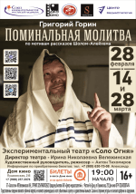 ПОМИНАЛЬНАЯ МОЛИТВА По мотивам рассказов Шолом-Алейхема Драматическая история, где жизнь балансирует на грани смеха и слез. Действие разворачивается в начале XX века в маленькой деревне Анатовка, где всегда царили мир и дружба между людьми разных вероисповеданий. Но с приходом новых времен начинаются погромы, рушатся судьбы и семьи. Это история о семье Тевье-молочника, чей мир распадается на глазах: дочери отказываются от уготованной им судьбы, выбирая любовь, веру и революционные идеалы, а веселые свадебные тосты сменяются похоронным стоном. - Автор пьесы: Григорий Горин - Режиссер-постановщик: Антон Тихомиров ЖДЕМ ВАС В ДОМЕ КИНО!