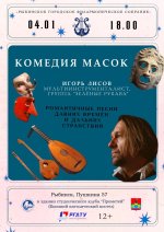 Лидер группы "Зеленые рукава", современный трубадур Игорь Лисов исполнит романтические песни средневековья. Лютня, флейты, бузуки, неповторимое звучание старинных инструментов в программе "Комедия масок".