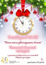 Большой зимний концерт - традиционное мероприятие Дворца культуры, на котором творческие коллективы Дворца представляют свои зимние номера. Вас ждут песни и танцы, атмосфера праздника и снежное настроение!