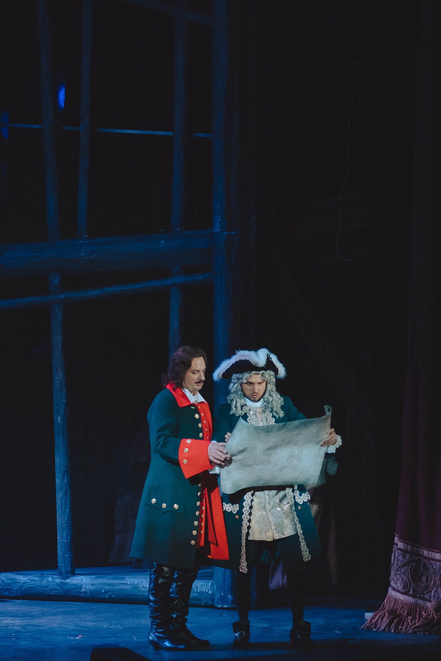 Спектакль позволит зрителям перенестись в эпоху формирования первых полков Петра, стрелецких бунтов 1682 и 1698 годов, времени „Великого Посольства“, Северной войны и основания новой столицы России — Петербурга.