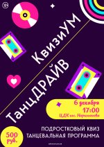Приглашаем вас на мероприятие, которое пройдет 6 декабря в 17:00! Проверьте свои знания и остроумие в увлекательном квизе, а затем насладитесь танцевальной программой!