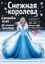 Музыкальный спектакль "Снежная Королева" для всей семьи! Продолжительность 1 час. 6 января в 13;00 в ДК имени Чекалова, пос. имени Морозова, пл. культуры, 3