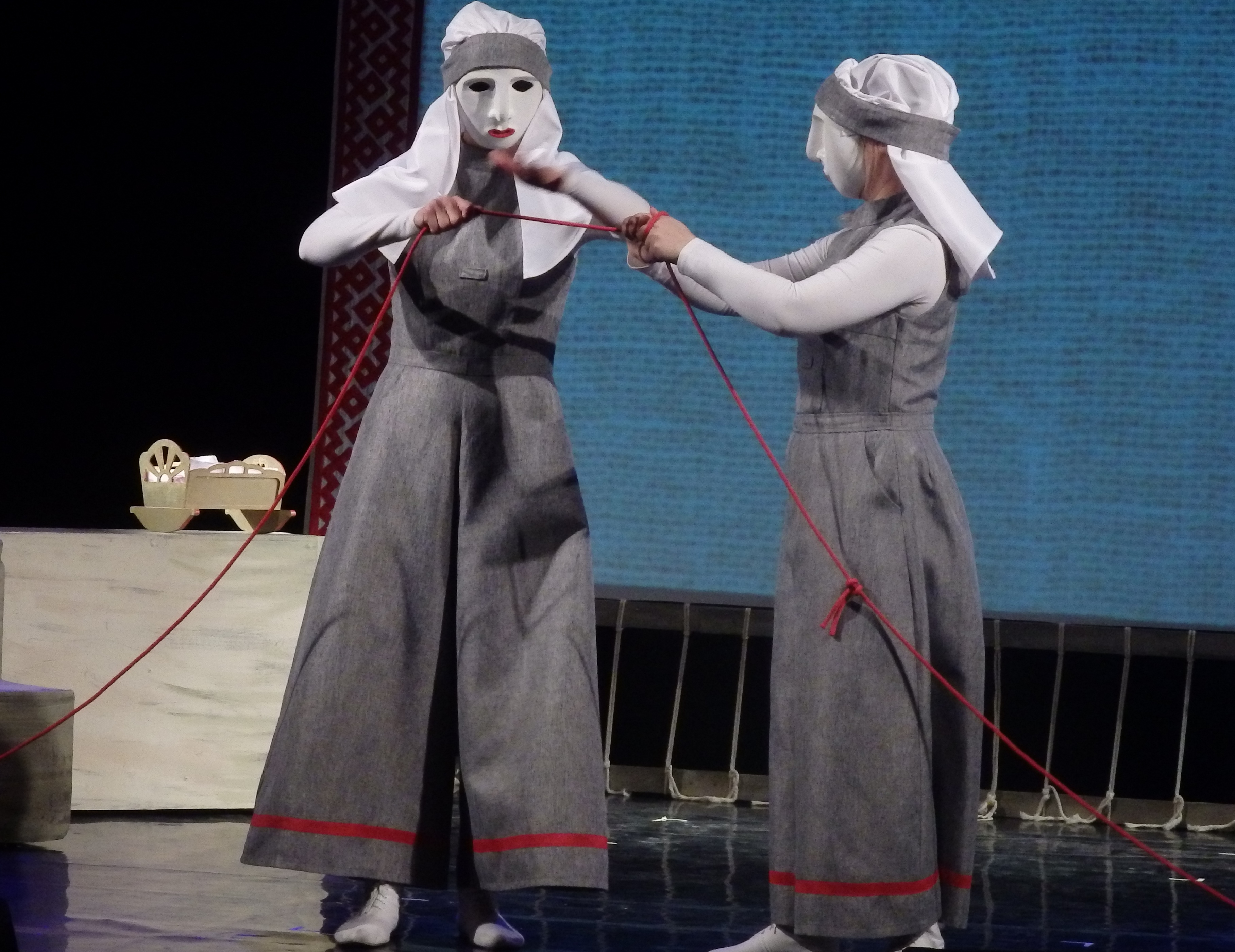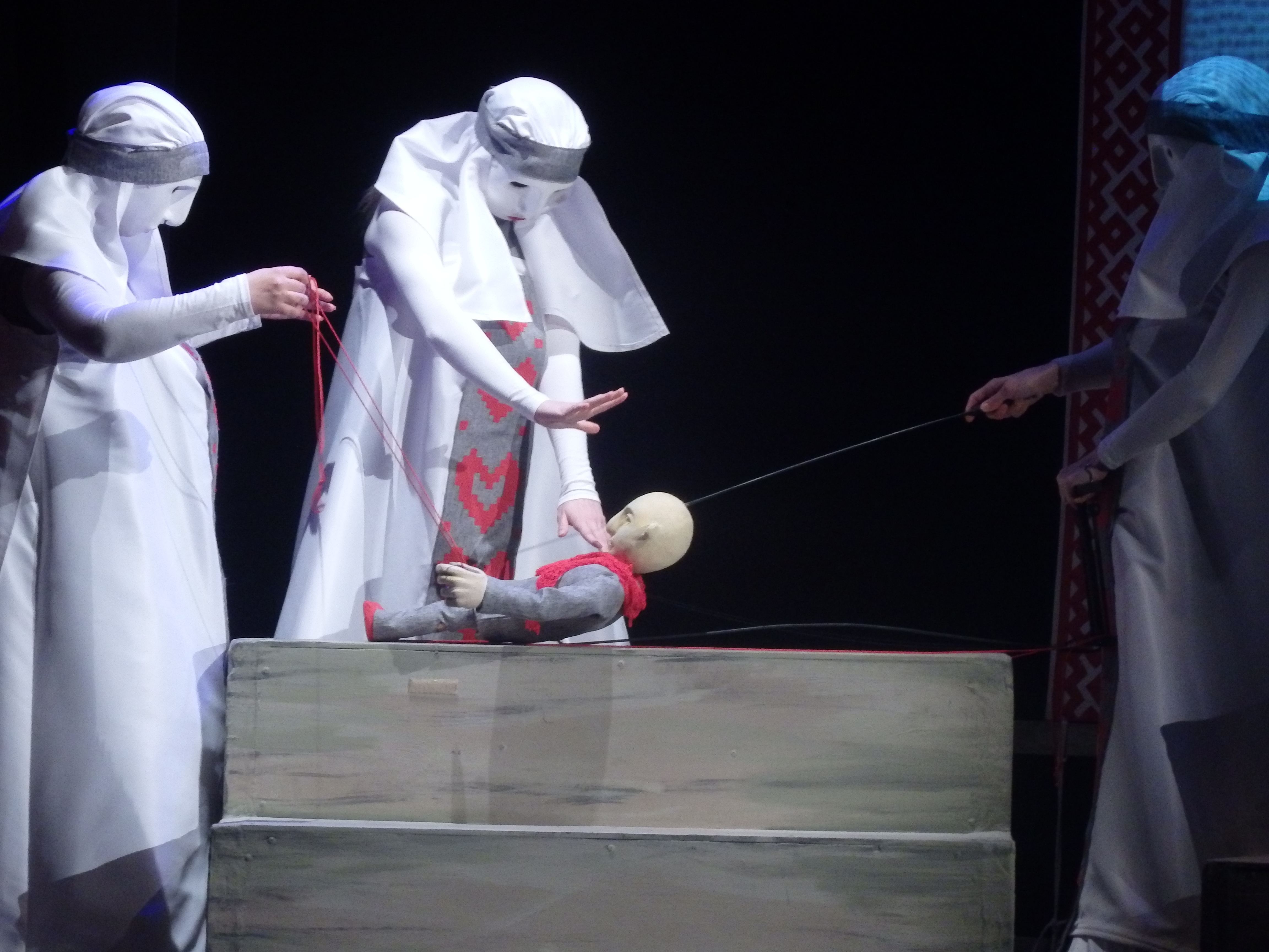 Салтан теряет счастье и вся его жизнь покорно подчинена Судьбе, нити которой с самого начала спектакля искусно плетут три девицы, знаменитой Пушкинской сказки.